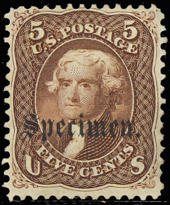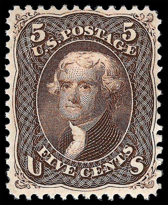 The most common shade of the 5 cent 1861 is brown. Issued also in dark brown, pale brown, and black brown, this stamp is not difficult to find but, as is the case with nearly every denomination of this issue, it is far from easy to find a copy that is well-centered.